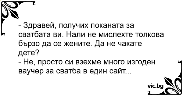 • Вицове от Facebook от нашата страница https://www.facebook.com/www.vic.bg