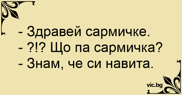 - Здравей сармичке. - ?!?...