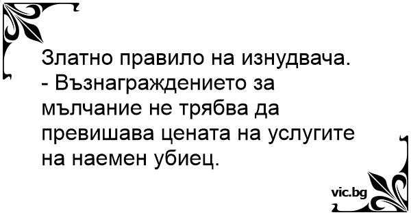 - Възнаграждението за мълчание не трябва да превишава цената на услугите на наемен убиец.