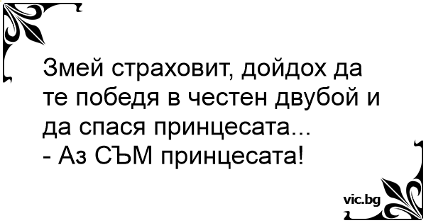 Змей страховит, дойдох да те победя в честен двубой и да спася принцесата...
