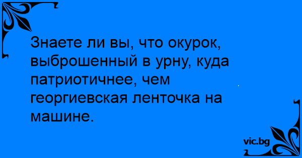 Знаете ли вы, что окурок, выброшенный в урну, куда патриотичнее, чем георгиевская ленточка на машине.