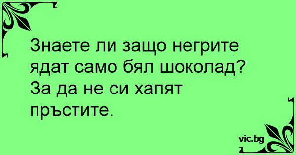 - Зачем придумали белый шоколад? - Чтобы и негритятам было чем выпачкать свои мордашки!