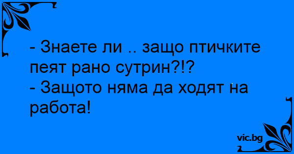 - Знаете ли .. защо птичките пеят рано сутрин?!?