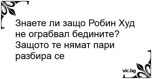 Знаете ли защо Робин Худ не ограбвал бедините?