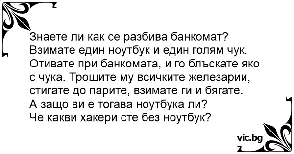 • Вицове от Facebook от нашата страница https://www.facebook.com/www.vic.bg