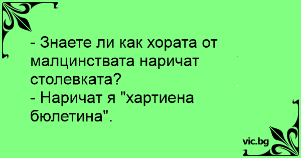 - Знаете ли как хората от малцинствата наричат столевката?