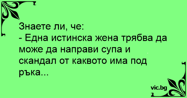 - Една истинска жена трябва да може да направи супа и скандал от каквото има под ръка...