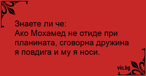 Ако Мохамед не отиде при планината, сговорна дружина я повдига и му я носи.