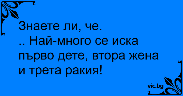 .. Най-много се иска първо дете, втора жена и трета ракия!