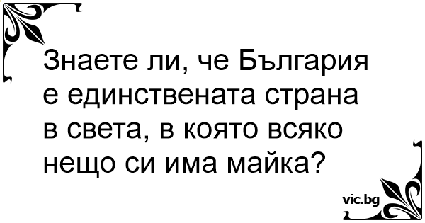 Знаете ли, че България е единствената страна в света, в която всяко нещо си има майка?