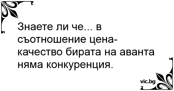 Знаете ли че... в съотношение цена-качество бирата на аванта няма конкуренция.