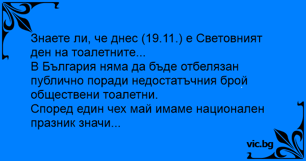 Знаете ли, че днес (19.11.) е Световният ден на тоалетните...