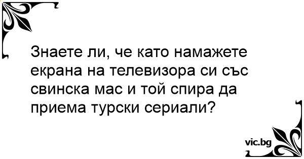 Знаете ли, че като намажете екрана на телевизора си със свинска мас и той спира да приема турски сериали?
