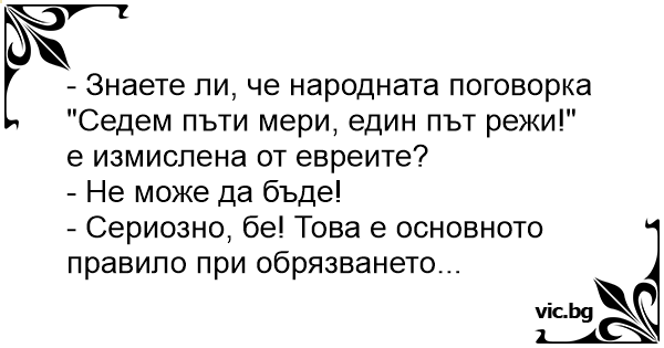 - Знаете ли, че народната поговорка "Седем пъти мери, един път режи!" е измислена от евреите?