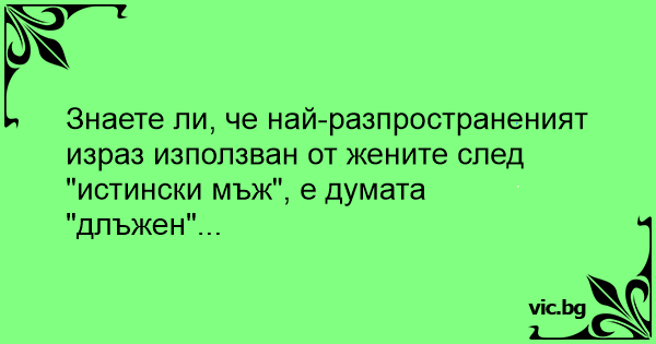 Знаете ли, че най-разпространеният израз използван от жените след "истински мъж", е думата "длъжен"...