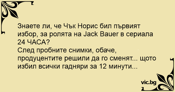 Знаете ли, че Чък Норис бил първият избор, за ролята на Jack Bauer в сериала 24 ЧАСА?