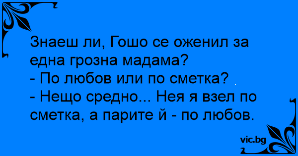 • Вицове от Facebook от нашата страница https://www.facebook.com/www.vic.bg