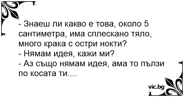 - Знаеш ли какво е това, около 5 сантиметра, има сплескано тяло, много крака с остри нокти?