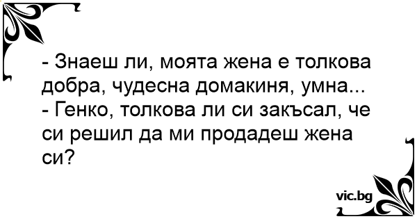 - Генко, толкова ли си закъсал, че си решил да ми продадеш жена си?