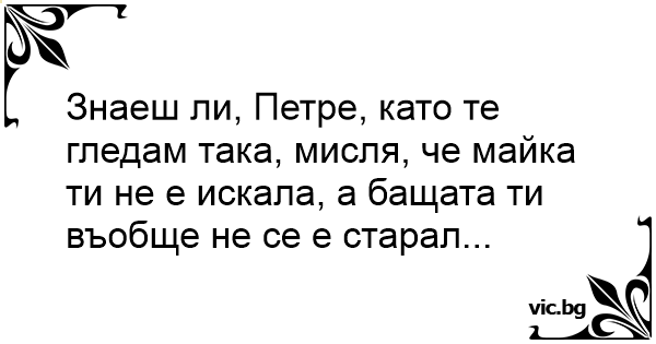 Знаеш ли, Петре, като те гледам така, мисля, че майка ти не е искала, а бащата ти въобще не се е старал...