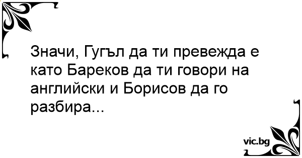 Значи, Гугъл да ти превежда е като Бареков да ти говори на английски и Борисов да го разбира...