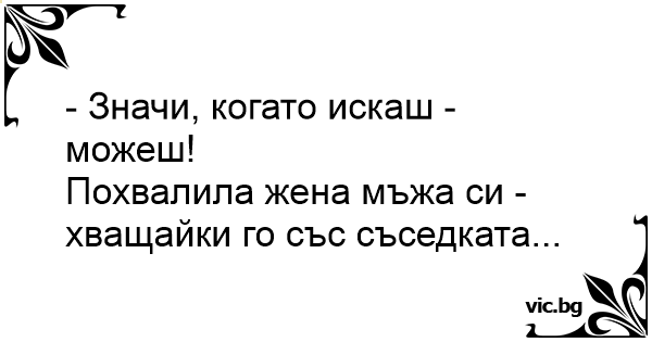 - Значи, когато искаш - можеш! - pохвалила жена мъжа си - хващайки го със съседката...