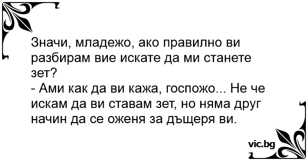 Значи, младежо, ако правилно ви разбирам вие искате да ми станете зет?