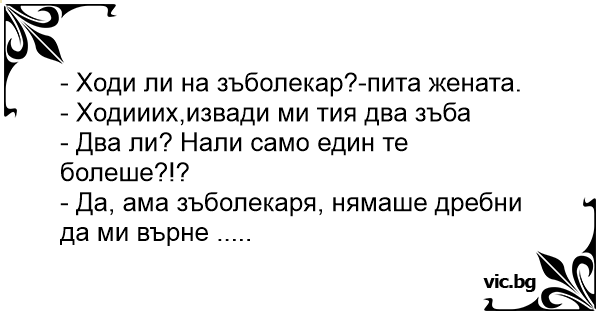 - Да, ама зъболекаря, нямаше дребни да ми върне .....