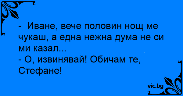 - Иване, вече половин нощ ме чуkaш, а една нежна дума не си ми казал...