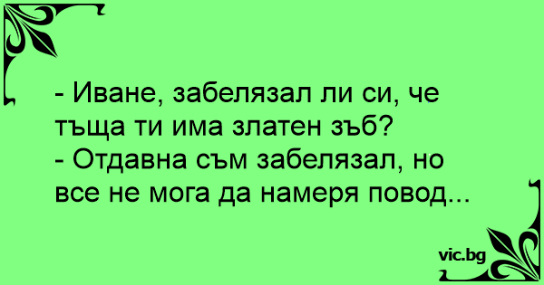 - Иване, забелязал ли си, че тъща ти има златен зъб?