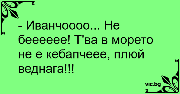 - Иванчоооо... Не бееееее! Т'ва в морето не е кебапчеее, плюй веднага!!!