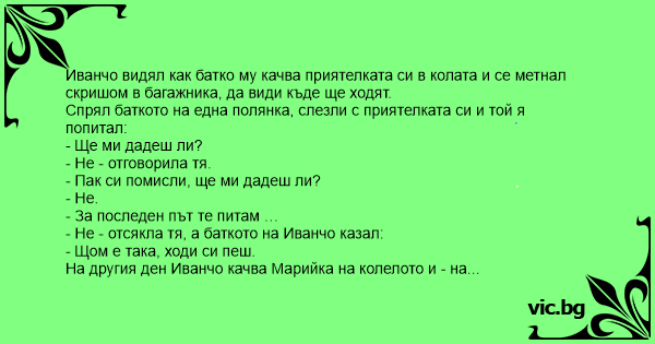 • Вицове от Facebook от нашата страница https://www.facebook.com/www.vic.bg