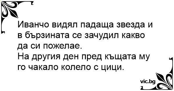 Иванчо видял падаща звезда и в бързината се зачудил какво да си пожелае.