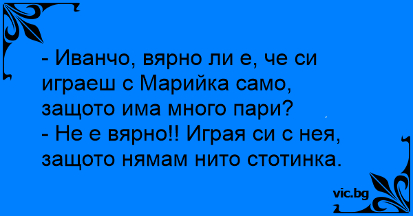 - Иванчо, вярно ли е, че си играеш с Марийка само, защото има много пари?