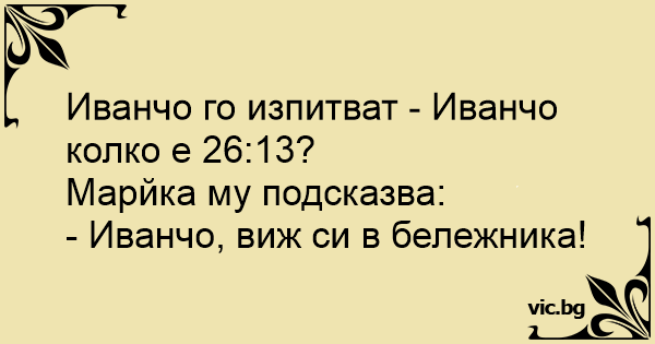 Иванчо го изпитват - Иванчо колко е 26:13?