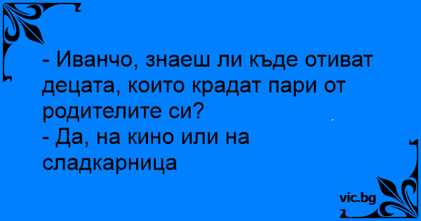 - Иванчо, знаеш ли къде отиват децата, които крадат пари от родителите си?