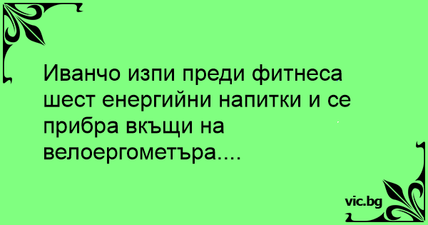 Иванчо изпи преди фитнеса шест енергийни напитки и се прибра вкъщи на велоергометъра....