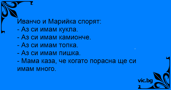 • Вицове от Facebook от нашата страница https://www.facebook.com/www.vic.bg