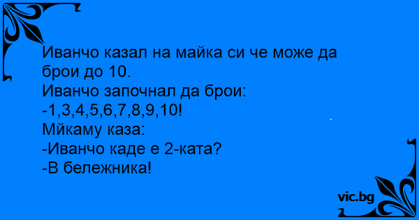 Иванчо казал на майка си че може да брои до 10.