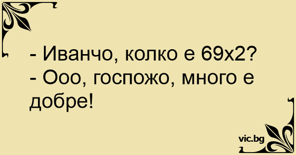 - Иванчо, колко е 69х2?