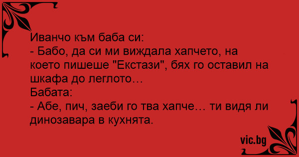 - Абе, пич, зaeби го тва хапче… ти видя ли динозавара в кухнята.