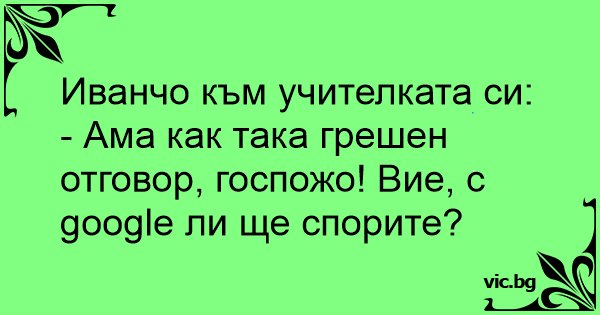 - Ама как така грешен отговор, госпожо! Вие, с google ли ще спорите?