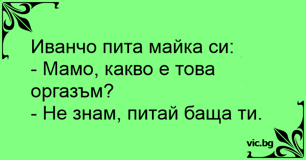 - Anyúú! Mi az az orgazmus? - Nem tudom kisfiam, kérdezd meg apádat.