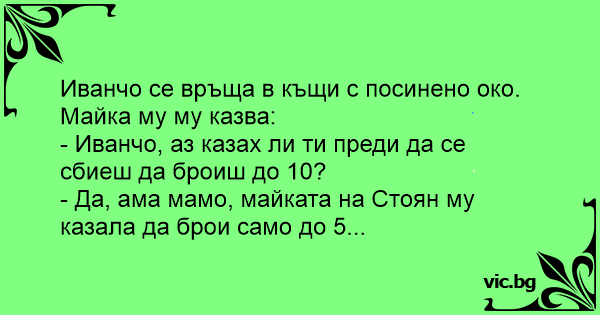 - Да, ама мамо, майката на Стоян му казала да брои само до 5...