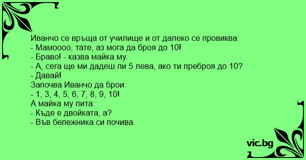 - А, сега ще ми дадеш ли 5 лева, ако ти преброя до 10?