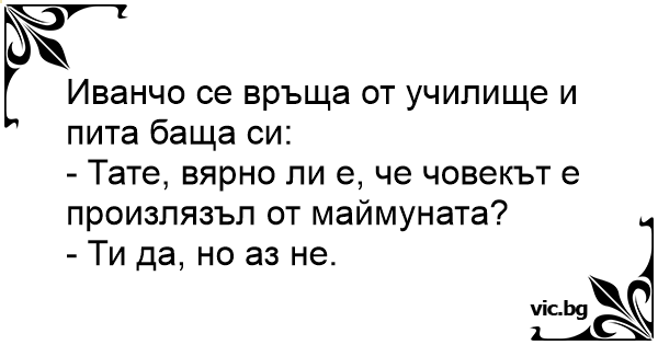 - Тате, вярно ли е, че човекът е произлязъл от маймуната?