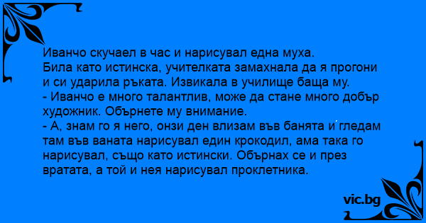 Иванчо скучаел в час и...