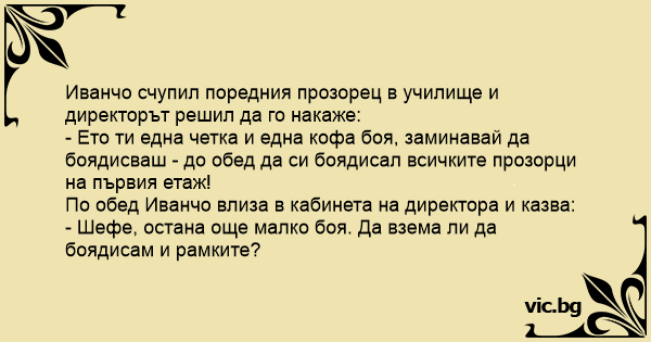 Иванчо счупил поредния прозорец в училище и директора го наказал като ко накара да боядиса прозорците!!!