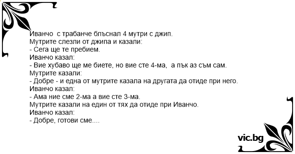 • Вицове от Facebook от нашата страница https://www.facebook.com/www.vic.bg