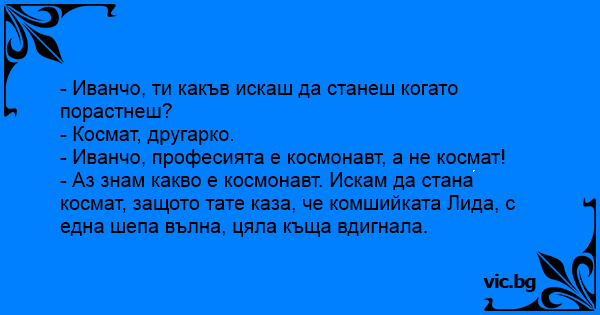 - Иванчо, професията е космонавт, а не космат!